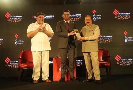 Jagtial DC A Sharath receives the award from Minister of Consumer Affairs, Food and Public Distribution Ram Vilas Paswan.