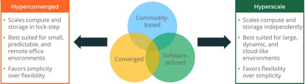 The key benefit and trade-of is simplicity vs flexibility, use cases might differ and might not even be relevant as the tech stack is undergoing major transformations such as containerization, function as a service etc for distributed applications thus it is relevant to assess what is best for you. It is good to assume that Commodity-based and software-defined, hyperscale infrastructure picks up where hyperconvergence leaves off. All the big boys of the social media and internet thrive on hyperscale architecture and we are witnessing the enormous amount of growth no one has ever imagined but is now a reality.